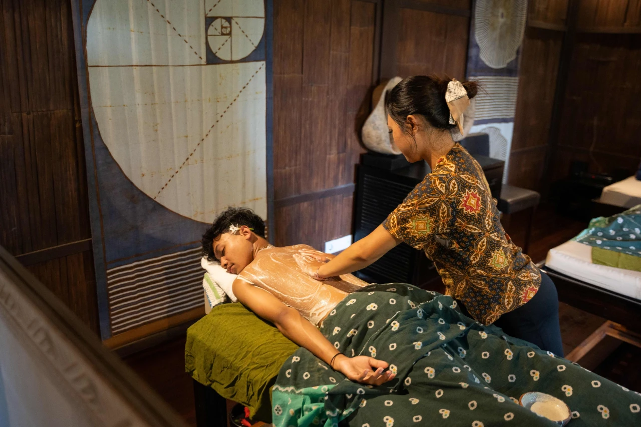 Tradi onal massage + body scrub + tradi onal facial + flower bath.